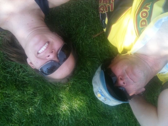 | Dad and me laying in the grass after the ride |