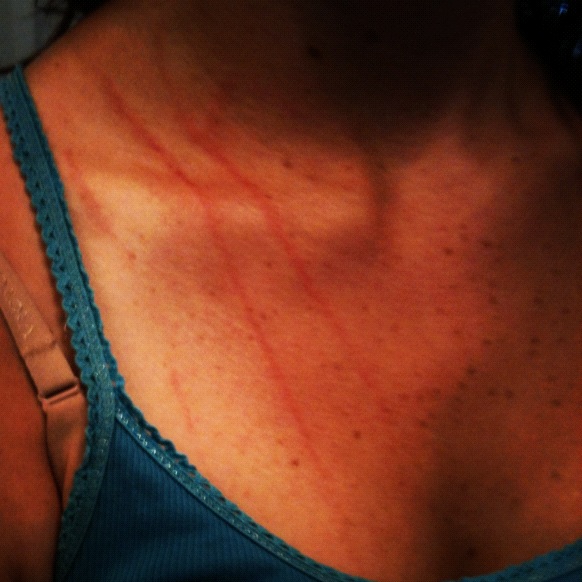 Well, it was really a dog,but whatever…. felt like the same animal! Tally and I were walking down the path when I leaned over to pet an oncoming dog that seemed super sweet. Out of nowhere, the dog snarled and lunged at me!