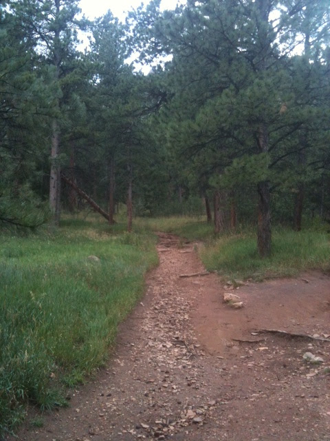 Unfortunately, the skies opened up and began dumping rain right around 5pm. I looked at the weather radar and saw that it seemed the storm would pass in 30 minutes, so we decided to brave the trails anyway. I was beginning to question my sanity when I drove into Boulder with the above as my view…not exactly optimum running conditions! However, the rain stopped and the sky began to clear just as I pulled into the parking lot at Chautauqua. Cool temps and beautiful scenery….the best way to start a run!